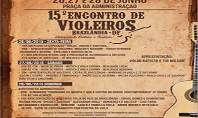 Em Brazlândia, acontece até domingo (28) o 15º Encontro de Violeiros, com apresentações de músicos e duplas em palco montado em praça pública, além de exposições temáticas,...