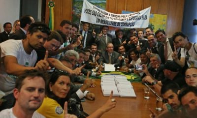 Depois de entregarem ao presidente da Câmara Eduardo Cunha (PMDB) o pedido de impeachment da presidente Dilma Rousseff, ativistas provocaram tumulto no Salão Verde da Câmara...