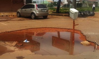 Um buraco com quase três metros de largura na curva da EQNL 17/19, em Taguatinga, virou alvo de um protesto bem humorado de moradores e comerciantes....