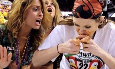 Uma dona de casa de Nebraska ganhou uma competição de comida no estado da Filadélfia, EUA, depois de comer 326 asas de frango em 30 minutos....