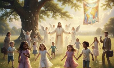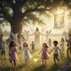 Crianças com alegria Igual um bando de andorinhas Viram de Jesus que dizia Vinde a mim as criancinhas Hoje no céu, um aceno Os Anjos dizem...