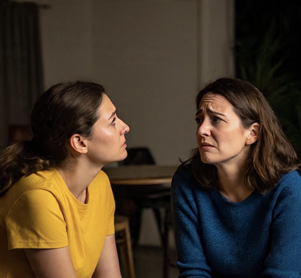 Papai havia morrido. Depois do enterro, as duas filhas, abaladas, sentavam-se frente a frente e conversavam sobre seus sofrimentos de irmãs. Das quatro cadeiras de madeira da sala de jantar, duas estavam vazias. A mãe havia morrido no parto da última filha e, agora, fora a hora do patriarca.