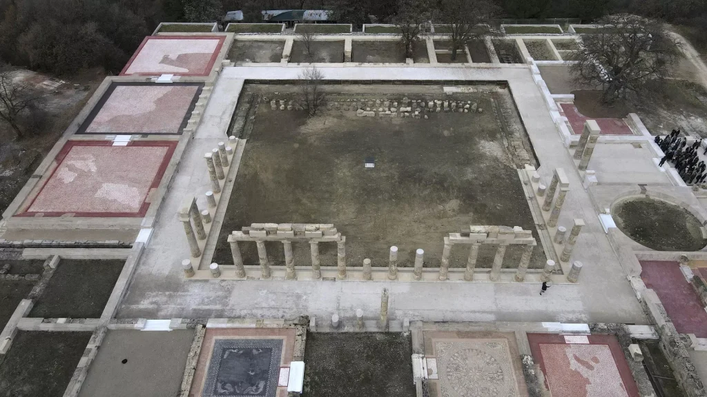 Construído há mais de 2.300 anos, durante o reinado de Filipe II, que transformou a Macedónia numa potência militar dominante, o palácio foi onde Alexandre, o Grande, foi coroado rei aos 20 anos de idade, depois de um rival político ter assassinado o seu pai em 336 aC. Dois anos depois, Alexandre iniciaria sua conquista no Oriente, que o levou até o atual Afeganistão.