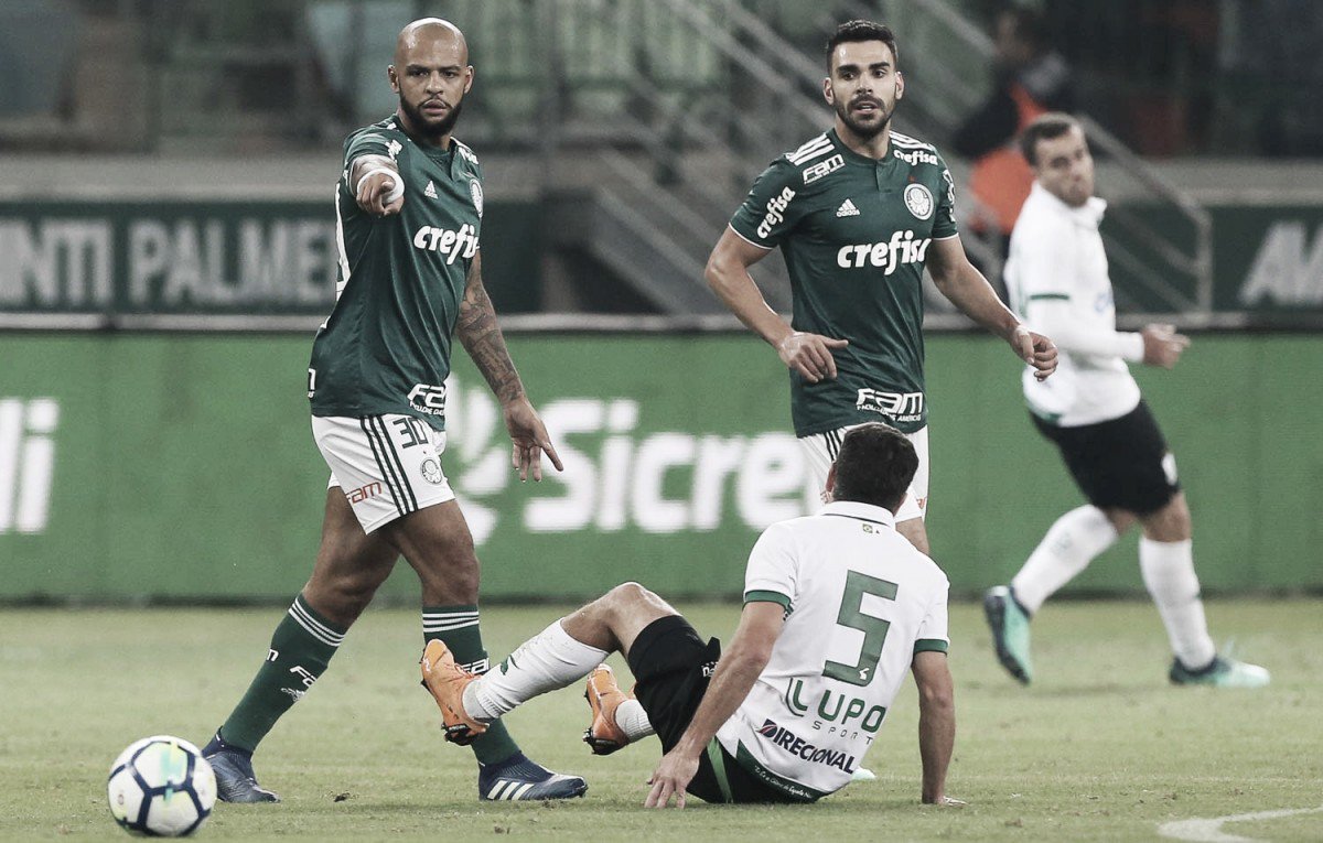 A vantagem de ter vencido por 2 a 1 no confronto de ida, em Belo Horizonte, não mudou as escolhas do Palmeiras. Dudu virou desfalque de última hora por uma opção do clube por deixar fora o atacante, que foi convocado para a lista de espera da seleção brasileira para a Copa do Mundo. Fora isso, o técnico Roger Machado escalou a força máxima e viu o time no começo ter mais posse de bola.