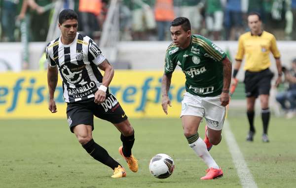Sem Valdivia e Robinho (o santista), que não ficaram nem no banco por causa de lesão, o jogo foi burocrático, com o Santos marcando a saída de bola palmeirense apenas no meio-campo, permitindo que os zagueiros alviverdes ficassem mais com a bola. A válvula de escape, como sempre, foi Dudu, que aproveitou muito os espaços dados na lateral para infernizar a vida do rival. Do lado santista, a melhor jogada tinha Geuvânio partindo para cima de Zé Roberto.