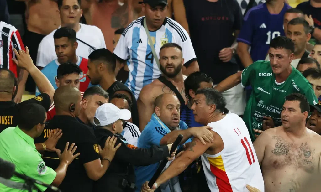 Momentos antes do início da partida entre Brasil e Argentina, na noite desta terça-feira (21) no estádio do Maracanã, torcedores das duas equipes entraram em confronto no setor Sul do estádio. Após o conflito inicial, a Polícia Militar entrou em ação, mas a confusão aumentou ao invés de diminuir.