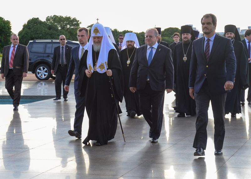 Em visita ao Brasil, o patriarca ortodoxo russo Kirill participou na manhã deste sábado (20) de cerimônia no Santuário Cristo Redentor, no alto do morro do Corcovado, onde foi recebido pelo cardeal d. Orani Tempesta. No último dia 12, o religioso esteve com o Papa Francisco em Havana, em histórico encontro entre líderes das igrejas do Ocidente e do Oriente, e na sexta, 19, visitou a presidente Dilma Rousseff no Palácio do Planalto.