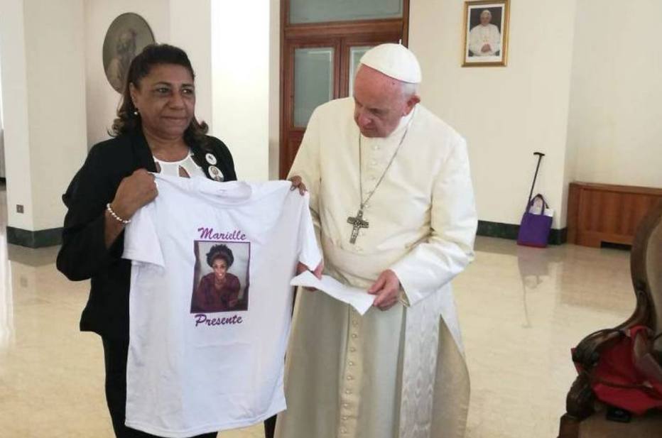 O Papa Francisco recebeu nesta quinta-feira, 2, no Vaticano, Marinette Silva, mãe da ativista brasileira Marielle Franco, assassinada no Rio em 14 de março. De acordo com a família, não foi o primeiro contato entre os dois. Dias após a morte, o pontífice teria ligado para Marinette, após receber uma carta da filha da vereadora do PSOL, Luyara. O contato teria sido intermediado, conforme a mídia italiana, pelo ativista argentino Gustavo Vera e pelo jornalista argentino Lucas Schaerer, da ONG Alameda.