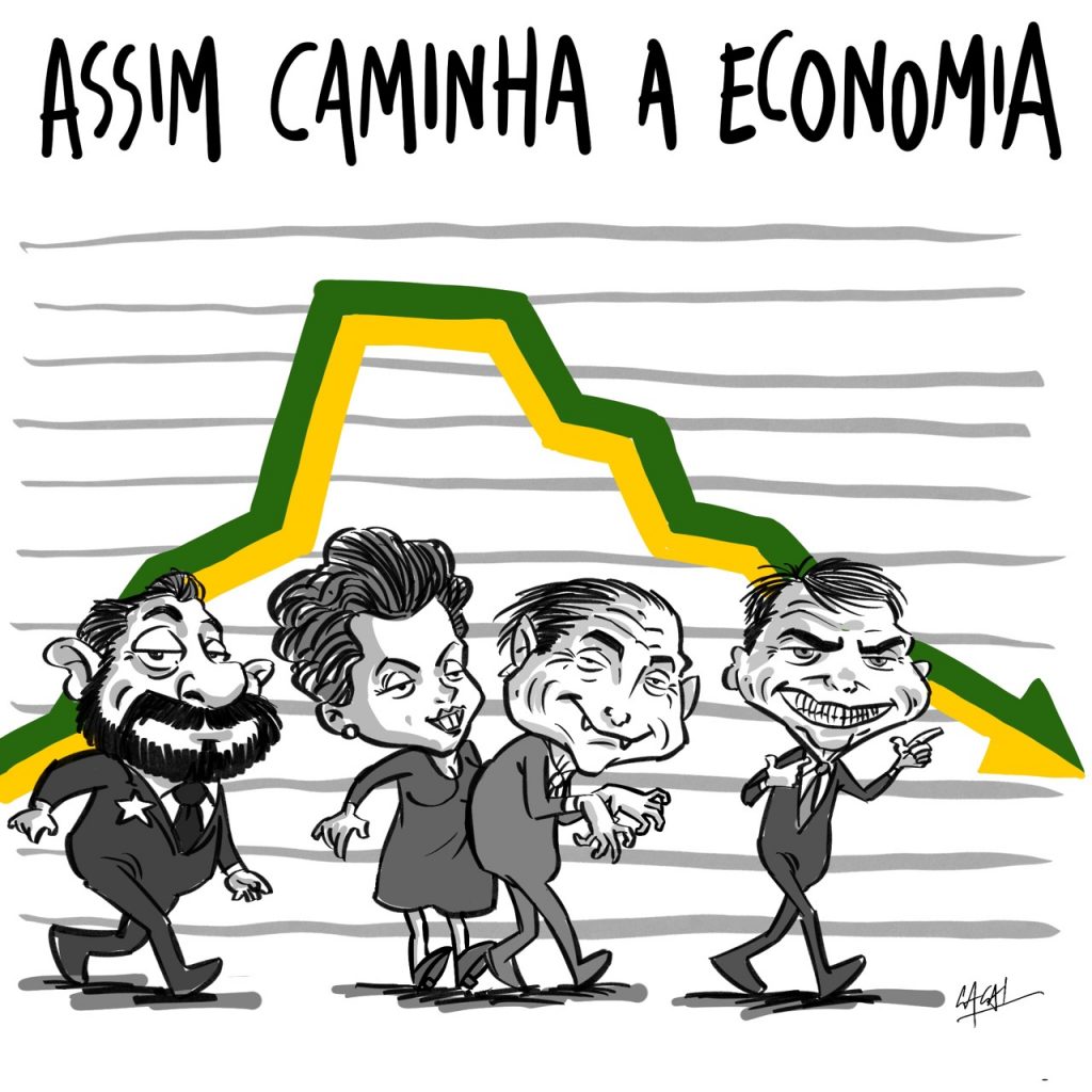 Para quem insiste em não querer ver o ‘Momento Brasil‘, Cacá Soares, sagaz e sarcástico, usou seu traço. Houve quem adicionasse um primor de legenda: Ano de 2002. Depois de oito anos de governo neoliberal, o Brasil chega ao fundo do poço e cai para a 12ª posição no ranking mundial das economias. Anos antes, o país era a 8ª economia do mundo. Ano de 2010. Ao final de oito anos de governo Lula, o Brasil recupera as quatro posições e vai além, chegando a ocupar a posição de 7ª economia do mundo. Ano de 2014. Ao final do primeiro governo Dilma, mesmo com todos os problemas políticos e a doença do lavajatismo, o Brasil permanece como a 7ª economia do mundo. A partir de 2015 rolam as pautas bombas comandadas pelo Cunha, a Lava Jato continua a todo vapor, em 2016 vem o golpe contra a Dilma, em 2018 prendem o Lula e no mesmo ano o inominável é eleito. Ano de 2021. O Brasil passa a ser novamente, como em 2002, a 12ª economia do mundo. Entenderam ou precisa desenhar? Cacá Soares, para os pouco entendidos, desenhou.