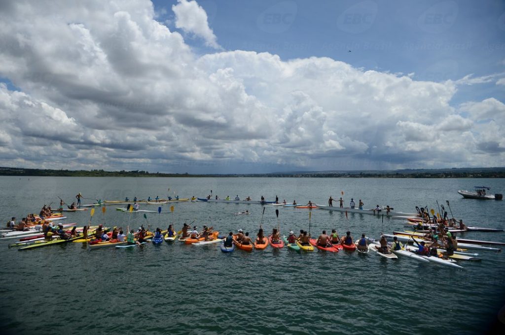 Neste sábado (22), quando se comemora o Dia Mundial da Água, cerca de 100 atletas participaram de um ato em defesa do Lago Paranoá, um dos principais pontos de lazer e de esporte de Brasília.