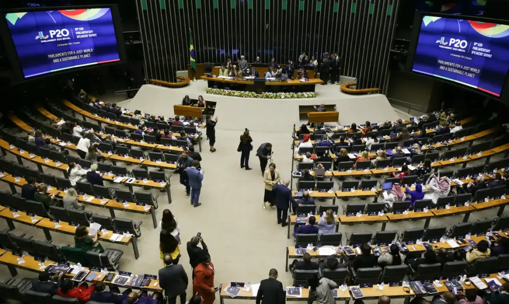 A 10ª Cúpula de Presidentes dos Parlamentos do G20, chamada P20, começou nesta quarta-feira (6) no Plenário da Câmara dos Deputados. O tema desta edição é “Parlamentos por um mundo justo e um planeta sustentável”.