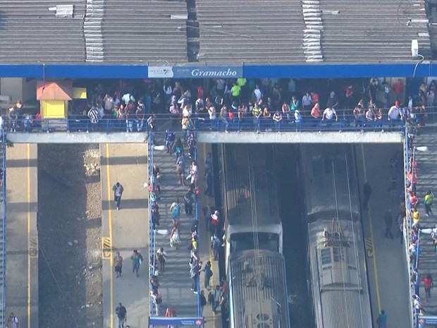 Passageiros ficaram revoltados com a paralisação de trens na estação de Gramacho, em Duque de Caxias, na Baixada Fluminense, na manhã desta quinta-feira (16). De acordo com a Supervia, concessionária responsável pelo transporte, as composições não estavam saindo de Gramacho em direção à Central do Brasil devido a um problema de sinalização na via que foi detectado às 7h30. Por volta das 8h50, as partidas eram realizadas da estação Corte 8.
