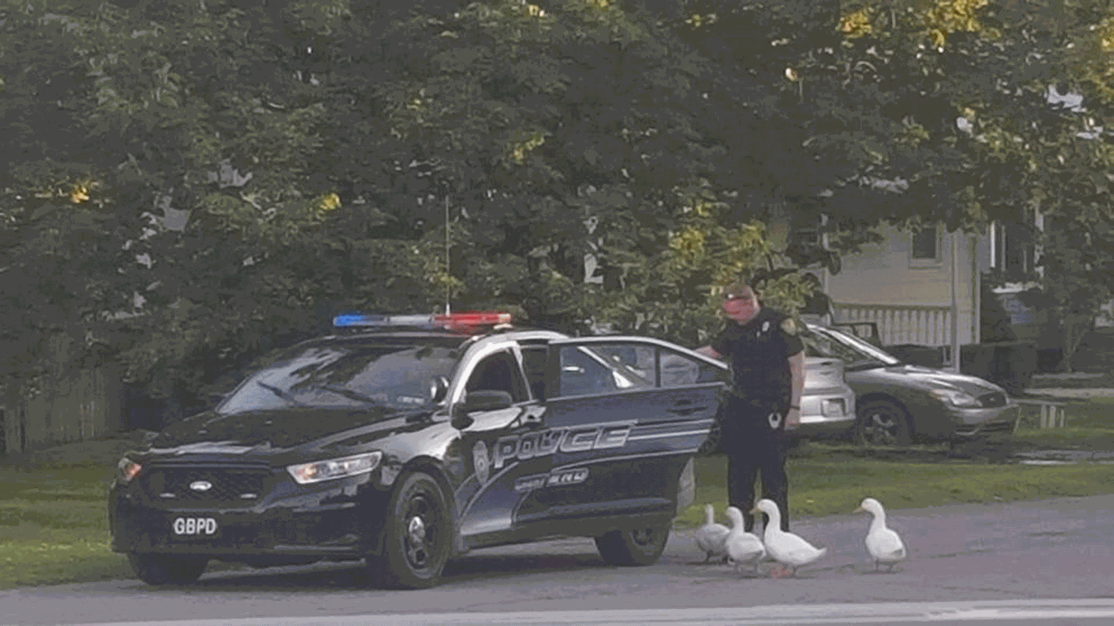 A polícia de Great Bend postou fotos dos quatro patos, que estavam vagando após ter fugido de casa. Eles foram “detidos” pelo policiais Sheehan, que os levou para a delegacia. Tudo acabou bem, a polícia conseguiu encontrar o dono e devolver as aves.