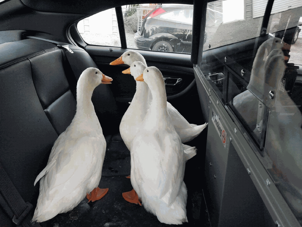 A polícia de Great Bend postou fotos dos quatro patos, que estavam vagando após ter fugido de casa. Eles foram “detidos” pelo policiais Sheehan, que os levou para a delegacia. Tudo acabou bem, a polícia conseguiu encontrar o dono e devolver as aves.