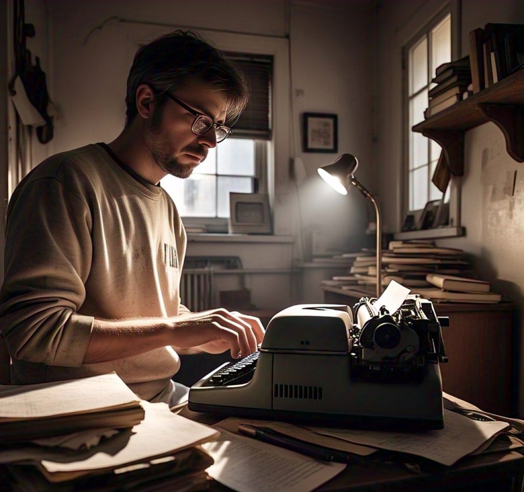 Empolgou-se de tal maneira que, em pouco mais de dois meses, já havia escrito um romance de quase duzentas páginas. Não pense você que o homem parou por aí, já que, mal colocou o ponto final na primeira história, já começou a bater firme nas teclas da velha Remington, herança do avô. Dessa vez, no entanto, contentou-se com um conto e, já no final do dia, antes de se deitar, imaginou outro, que anotou em um pedaço de papel para não esquecer.