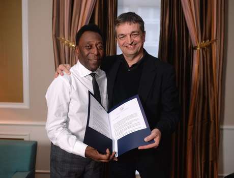 Pelé entra em campo e abraça candidatura de Champagne para a presidência da Fifa
