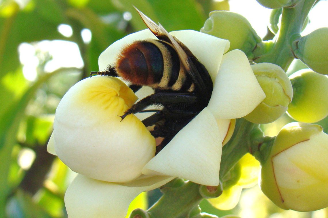 “Por exemplo, a cultura do maracujá, para a produção de fruto, precisa que uma abelha, a mamangava, de grande porte, visite uma flor e leve o pólen para o estigma de outra flor, que é a parte feminina. Só assim começa a produção do fruto. Se não houver o transporte do pólen pela abelha, o fruto não é formado e é necessário que o produtor contrate pessoas para fazer a polinização manual, esfregando a mão em uma flor e levando o pólen para a outra”.
