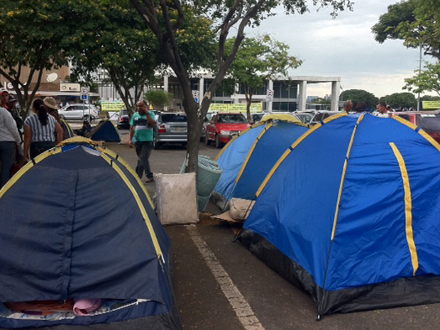 Agricultores e integrantes de movimentos de luta por terra acampam desde a madrugada desta segunda (21) em frente ao Palácio do Buriti. Eles reivindicam melhores condições para o plantio.