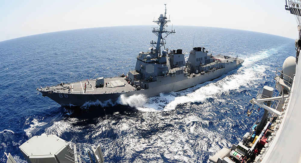 No início do dia, os militares dos EUA disseram em um comunicado que o destróier de mísseis guiados dos EUA, Preble, havia navegado perto do disputado Scarborough Shoal, reivindicado pela China no Mar do Sul da China.