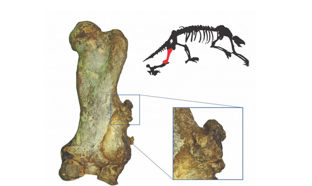 “Esse exemplar estava quase inteiro e a gente percebeu que havia uma protuberância óssea no fêmur que não devia estar ali, porque a gente conhece a anatomia dos animais. Ainda na caverna, imaginei que aquilo podia ser uma patologia, até um tipo de tumor. Não é uma coisa muito comum”, disse.