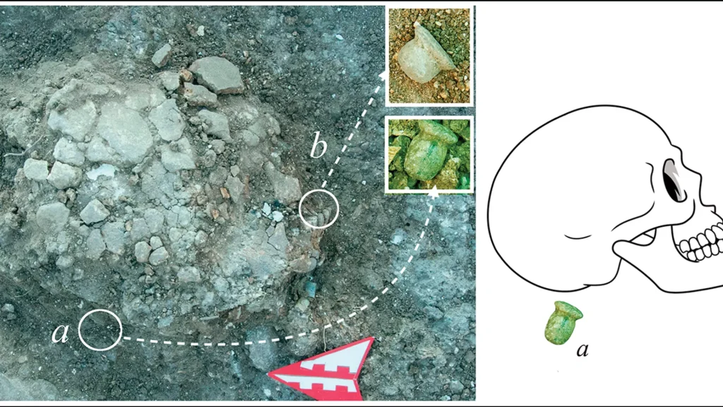 Oitenta e cinco dos ornamentos encontrados estavam completos. Segundo os arqueólogos, os tamanhos e formatos das joias sugerem que as peças eram adequadas para decoração de orelhas e queixo. Nenhum dos enfeites foi encontrado em corpos de crianças.
