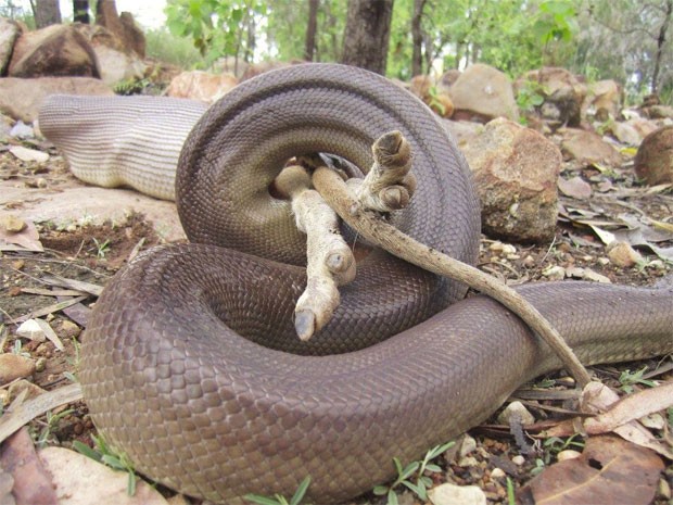 Segundo ele, provavelmente a píton surpreendeu o canguru enquanto ele comia ameixas caídas de uma árvore e o matou asfixiando-o.