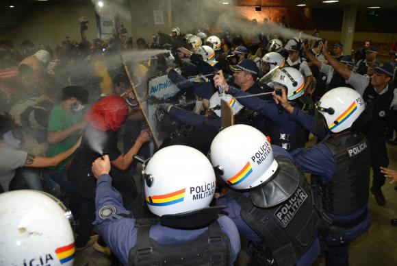 A confusão começou na estação do metrô, no subsolo da Rodoviária do Plano Piloto, região central da cidade, quando os manifestantes anunciaram que iriam pular a catraca de acesso à estação. Os policiais usaram spray de pimenta e, em seguida, fizeram uma barreira em frente a escadaria que dá acesso à estação para dispersar o grupo.