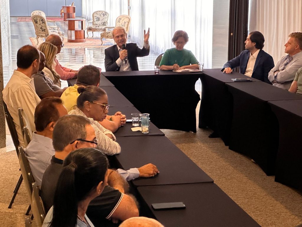 Representantes de sindicatos de trabalhadores e associações estiveram reunidos com o empresário Paulo Octávio, presidente do PSD-DF, para pedir apoio no sentido de aumentar a representatividade destas entidades, que o grupo considera esvaziadas após a reforma trabalhista, ocorrida no governo de Michel Temer (MDB). Organizado pela presidente da Federação dos Trabalhadores em Turismo e Hospitalidade (Fetratuh), Vera Lêda Ferreira de Morais, e pelo diretor Peterson Brilhante, o grupo saiu com a garantia de que o empresário vai buscar apoio aos pleitos apresentados.