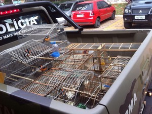 A Polícia Militar Ambiental apreendeu cerca de 30 pássaros silvestres em Ceilândia na tarde desta quarta (12). De acordo com o 2º sargento Silvio Amado, os policiais ao avistarem as aves na frente de uma casa durante patrulhamento de rotina, foram verificar a procedência dos animais e a pessoa responsável não tinha a autorização para criar as aves, disse.