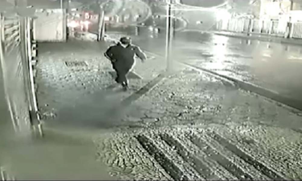 O homem, vestindo abrigo esportivo escuro, usando máscara e boné pretos, vem caminhando pela calçada em frente a representação diplomática, que fica no bairro de Botafogo, na zona sul da cidade. Rapidamente, ele acende o artefato e o lança sobre o muro. Em seguida, ele sai correndo e a bomba explode.