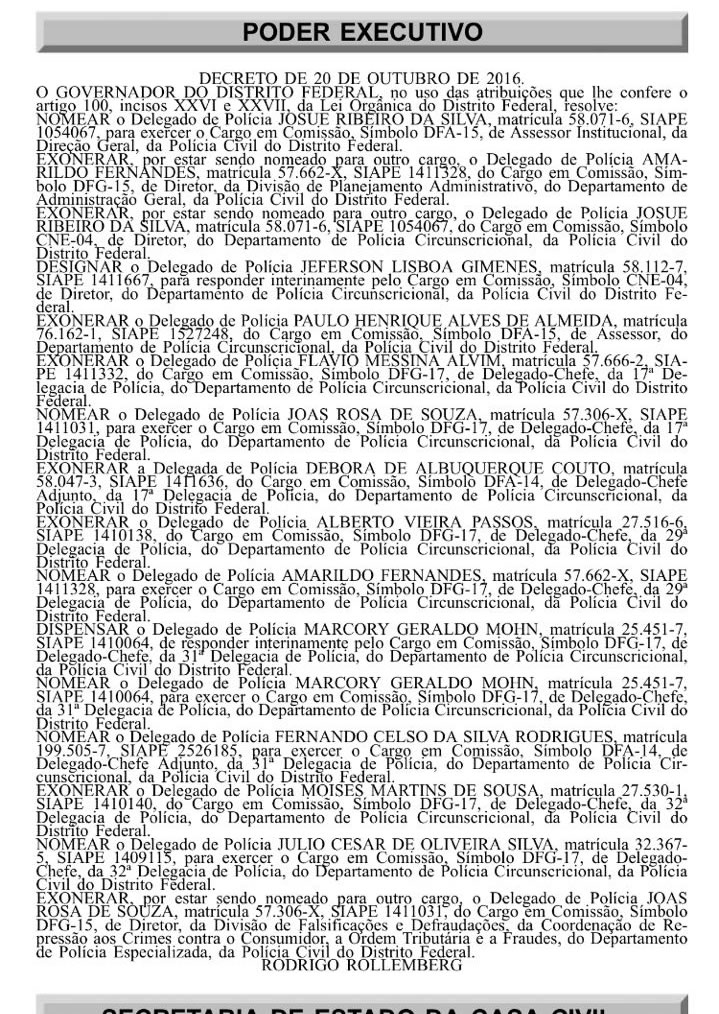 Foi publicado nesta manhã, 21, a exoneração de 7 delegados de polícia dos cargos comissionados de chefia que eram exercidos à frente de unidades da polícia.