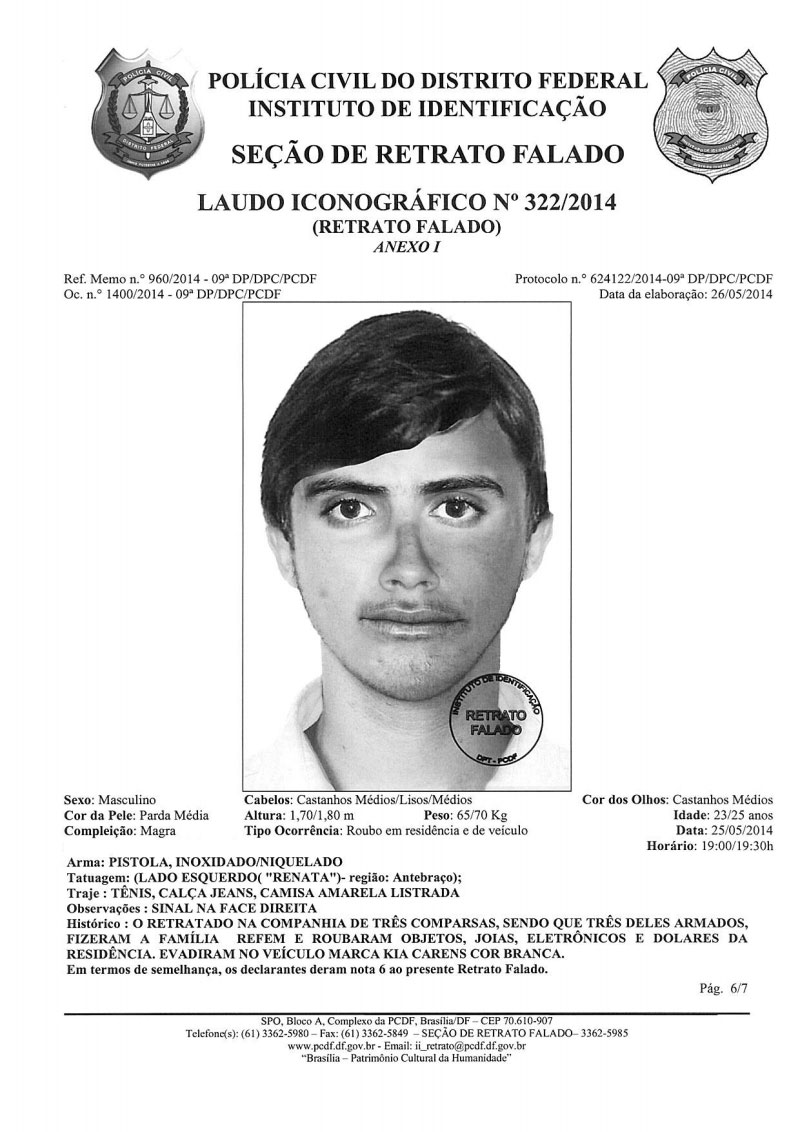 A Polícia Civil divulgou nesta terça 27 o retrato falado dos autores de um roubo em uma residência da QI 12, do Lago Norte. O assalto foi no domingo, 25.