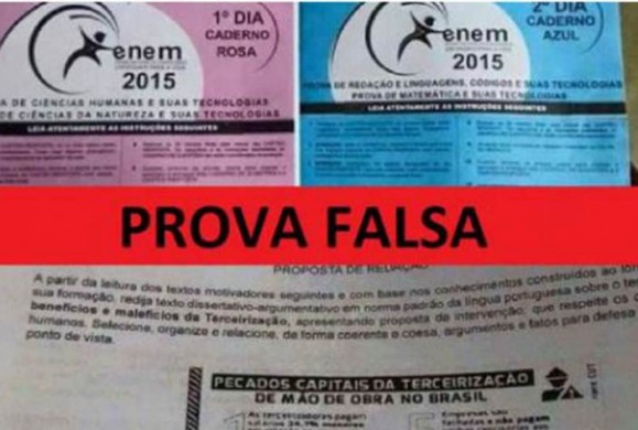Neste domingo, 18, imagens das capas dos cadernos de questões dos dois dias da prova circularam em redes sociais. Uma imagem com o suposto tema da redação deste ano, que seria sobre os benefícios e malefícios da terceirização da mão de obra, também foi compartilhada.