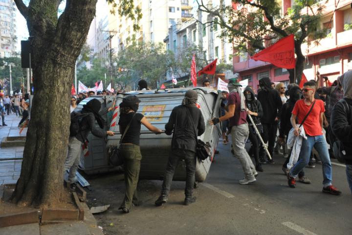 A Secretaria de Segurança Pública do governo do Rio Grande do Sul informou que a polícia acompanhou a movimentação até o limite de uma faixa que havia sido colocada pelas forças de segurança para demarcar o limite da manifestação. Após a faixa, estava a Brigada Militar.