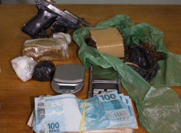 No interior da residência de W.F.S., de 25 anos, os agentes encontraram dinheiro, maconha, crack, uma balança de precisão e uma pistola, calibre 380.