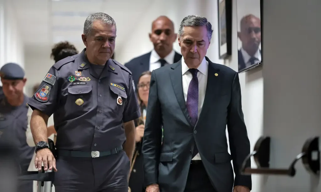 A Polícia Militar de São Paulo reuniu-se na capital paulista com o presidente do Supremo Tribunal Federal (STF), Luís Roberto Barroso, para apresentar o funcionamento das novas câmeras corporais da PM Paulista. O encontro ocorreu no Centro de Operações da Polícia Militar (Copom).