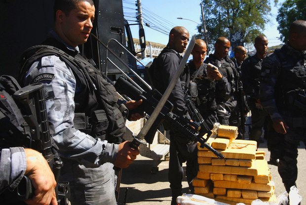 Policiais do Batalhão de Choque apreenderam no interior de uma casa em Acarai 20 tabletes de maconha, sete sacos de aproximadamente dois quilos de maconha, 221 trouxinhas da mesma droga, além de um carregador de fuzil 556, sete munições do mesmo calibre, e uma munição de fuzil 762. Entre o material apreendido, chamou atenção da polícia uma espada ninja. Já o Batalhão de Ação com Cães (BAC) apreendeu 40 tabletes de maconha durante buscas na região. As ocorrências estão sendo registradas na 39º DP (Pavuna).