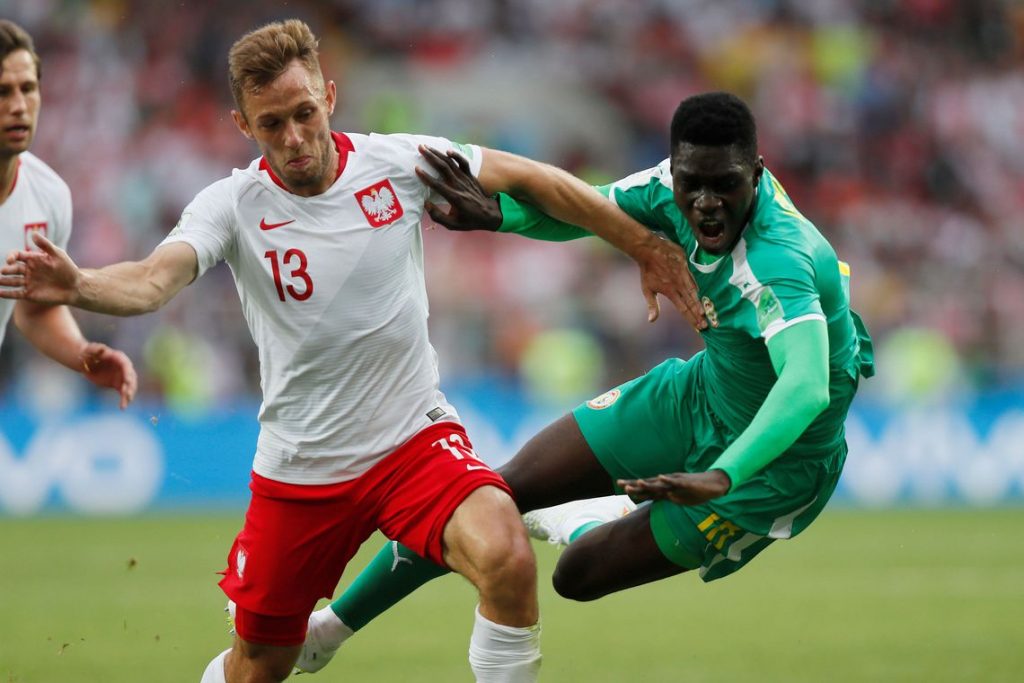 Os primeiros 15 minutos foram de muito estudo. Enquanto os poloneses tentavam chegar à meta do goleiro Ndiaye mais na base da troca de passes, Senegal explorava as saídas rápidas para o contra-ataque como principal arma.