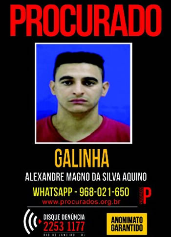 O Portal dos Procurados divulgou nesta quinta-feira (17), um cartaz com a foto de Alexandre Magno de Aquino Sampaio, o Galinha. Ele é um dos acusados de assassinar o ex-vereador de São João de Meriti, Nelson Gomes de Souza, conhecido como Nelson Lilinho, de 52 anos. Ele foi assassinado a tiros, no bairro Tomazinho, na Baixada Fluminense, após suposta briga de trânsito, na tarde de quarta-feira.