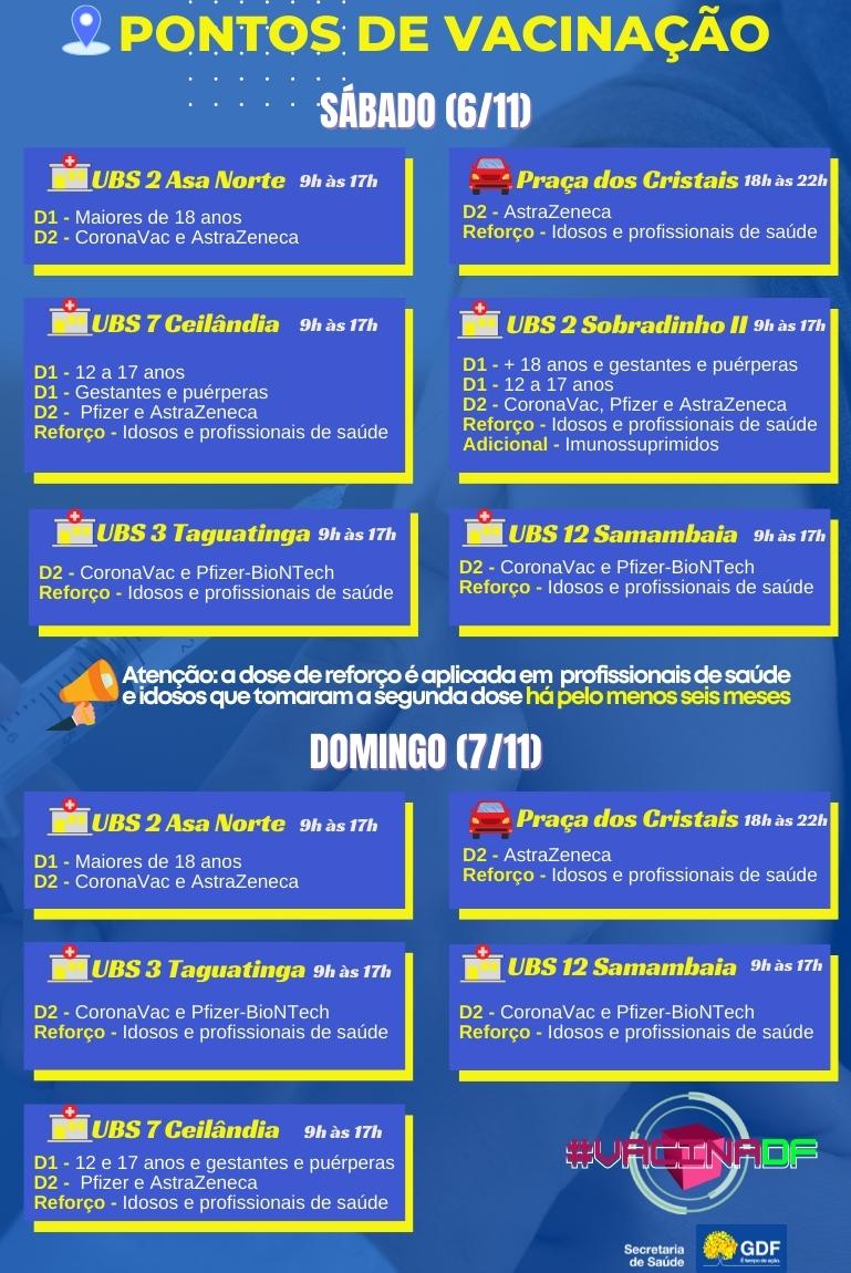 Haverá atendimento para todos os públicos aptos a receberem a vacina. A Secretaria de Saúde lembra que a segunda dose das vacinas AstraZeneca e Pfizer-BioNTech é aplicada em quem completou 56 dias do recebimento da primeira dose; no caso da CoronaVac, o ciclo vacinal pode ser completado entre 14 e 28 dias após a primeira dose.