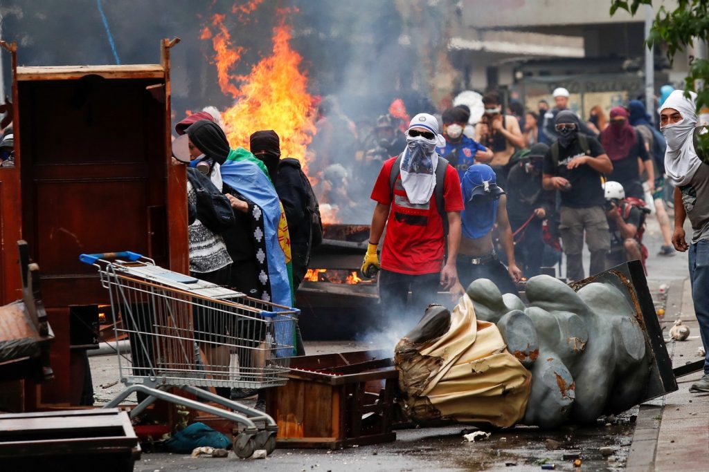 Além disso, outro grupo saqueou a Paróquia de La Asunción, construída em 1876 e uma das igrejas mais emblemáticas de Santiago. Segundo o jornal “La Tercera”, manifestantes picharam a fachada da construção e levaram bancos, confessionários e imagens, que foram queimadas em barricadas.