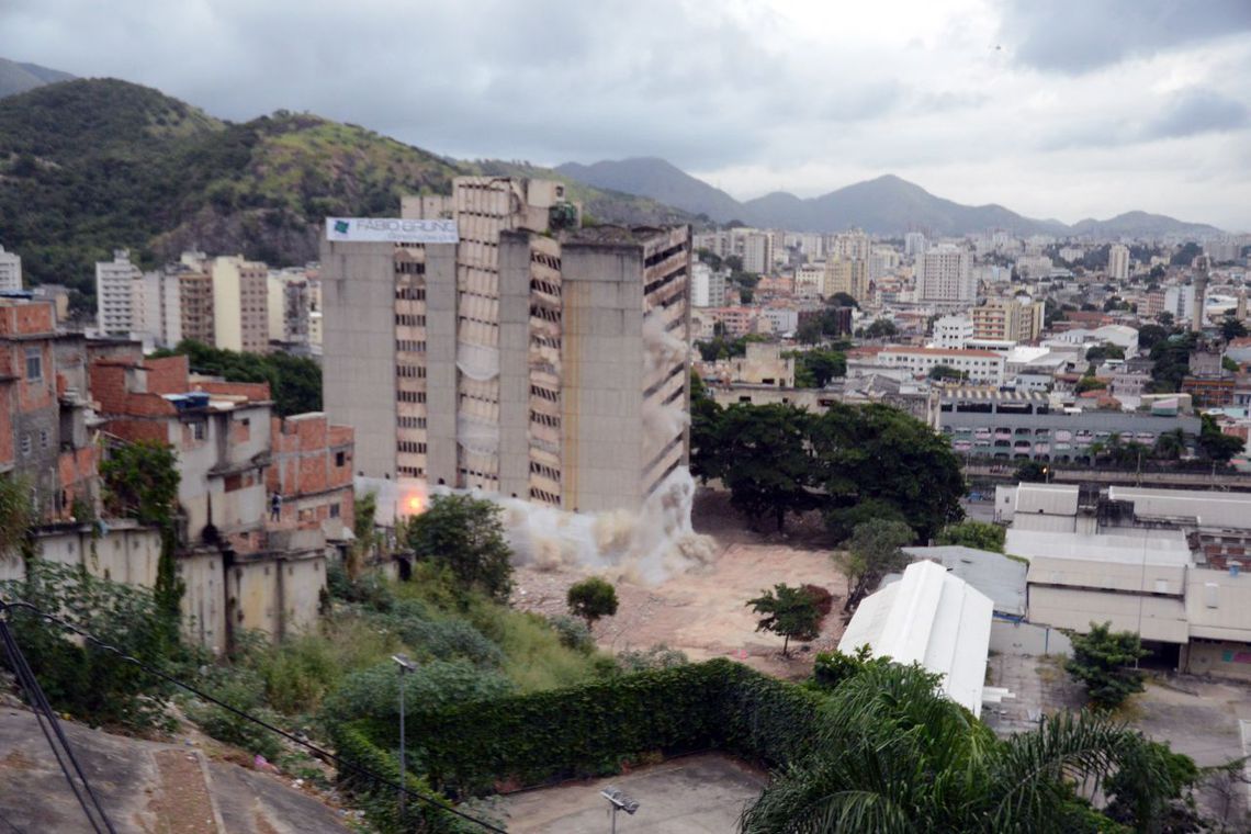 Um antigo prédio que pertenceu ao Instituto Brasileiro de Geografia e Estatística (IBGE) foi implodido neste domingo (13) no Rio de Janeiro. Localizado na Mangueira, bairro da região central da cidade, o edifício vinha servindo de moradia para centenas de famílias sem-teto há cerca de duas décadas. A União cedeu ao município o terreno, onde será erguido um conjunto habitacional do programa governamental Minha Casa, Minha Vida. As famílias serão reassentadas.