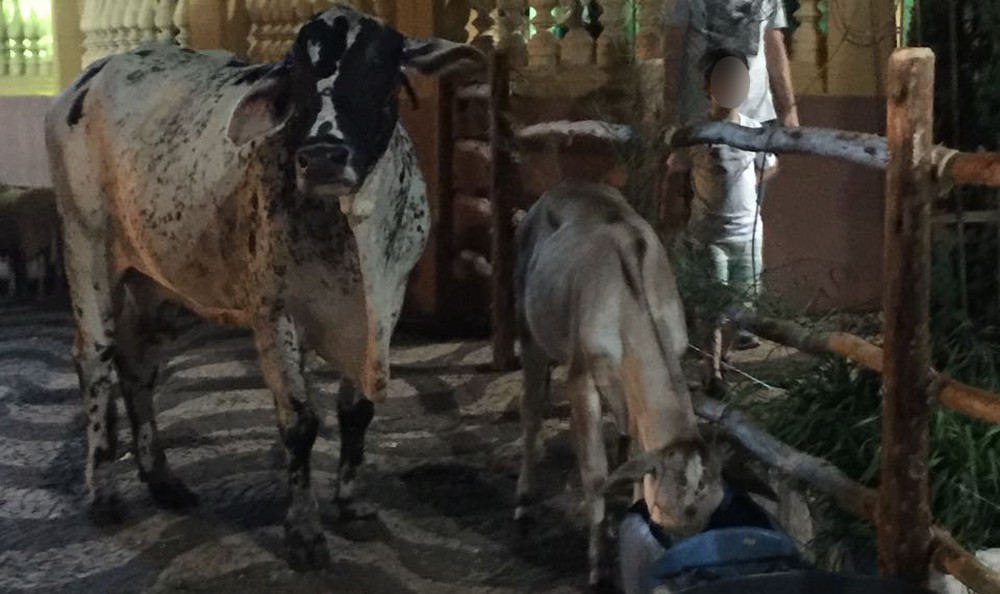 O presépio foi montado no último fim de semana com vaca, bezerro, ovelhas e jumento. A intenção era expor os animais todos os sábados e domingos até o Natal. Mas com as reclamações de moradores a ideia foi encerrada com apenas dois dias de exibição.