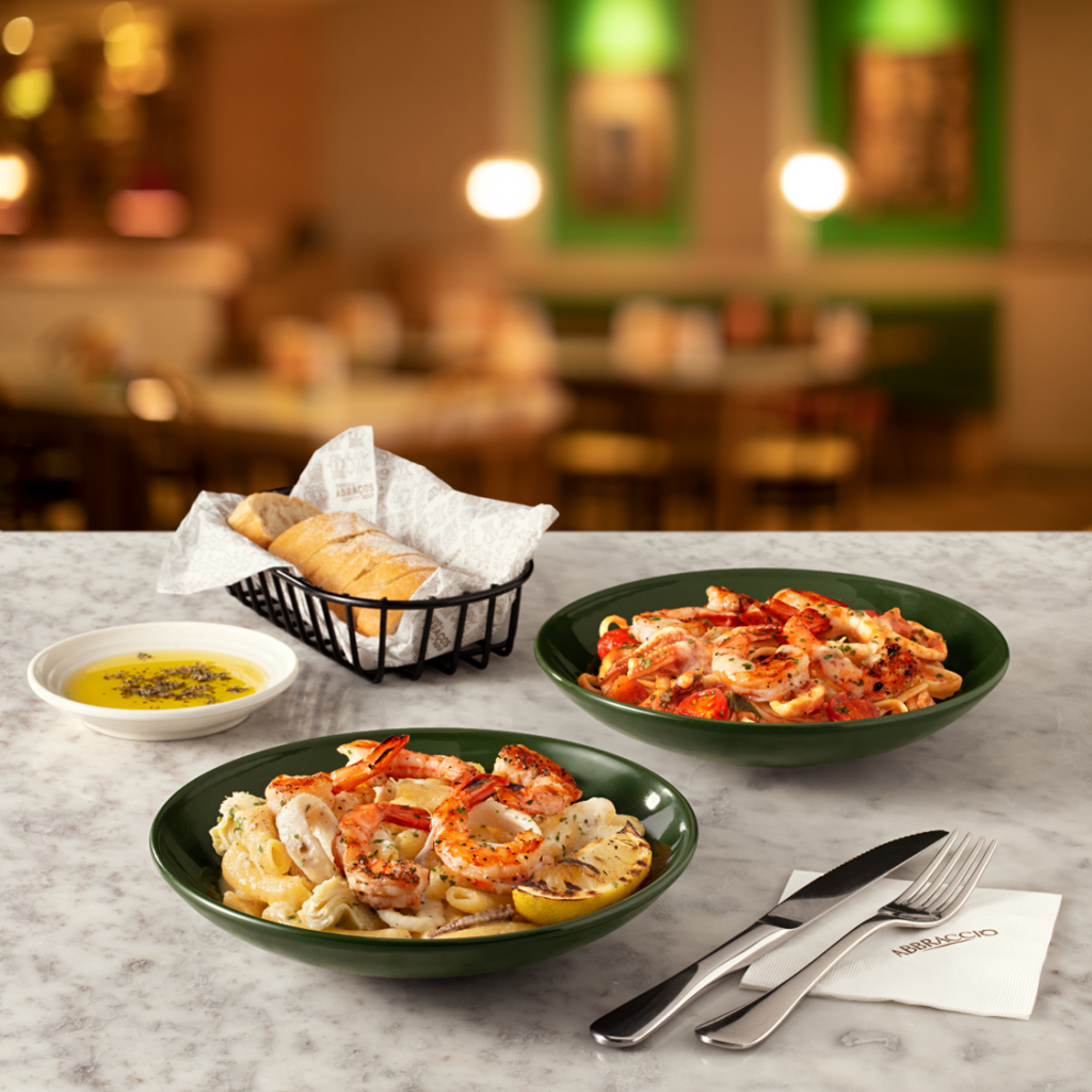 A rede lançou recentemente dois pratos inspirados no mar, começando pelo Rigatoni Frutti di Mare (R$ 84,90), feito com massa Rigatoni artesanal preparada com molho carbonara especial com um toque de limão siciliano, acompanhada de camarões, lula, alcachofra e uma fatia de limão siciliano grelhado para finalizar. Outro lançamento é o Linguine Mediterraneo (R$ 79,90), que leva massa Linguine preparada com delicioso molho de tomate cubetti e um toque de caldo de camarão. Para completar o prato, camarões grelhados e lula.