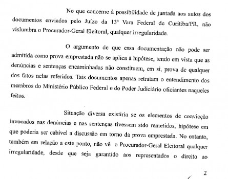 Na ação, a defesa da coligação da presidenta alega que as informações da Lava Jato não podem ser emprestados para o andamento do processo eleitoral.