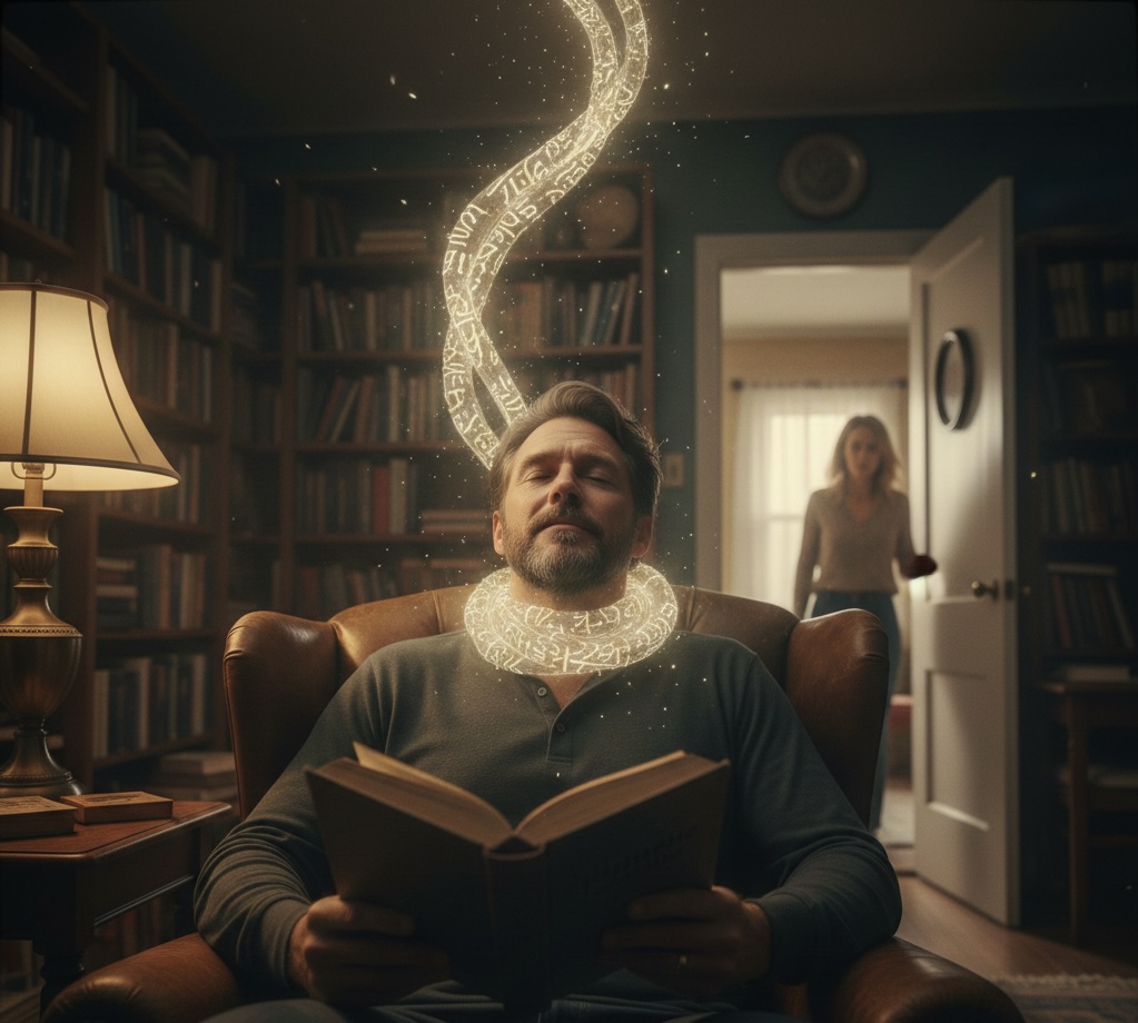 O leitor não percebeu, tinha os olhos fechados enquanto murmurava as palavras de uma passagem que o comovera.