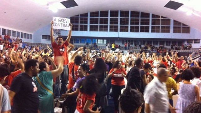 Os professores das redes municipal e estadual de Educação do Rio continuam em greve. A decisão foi acertada durante assembleia da categoria realizada nesta sexta-feira (13) no Club Municipal, na Tijuca, Zona Norte do Rio. A maioria dos presentes no encontro votou a favor da paralisação. O principal motivo foi o fato de o governo estadual ter aberto um processo administrativo contra 146 professores. Eles poderão ser exonerados.
