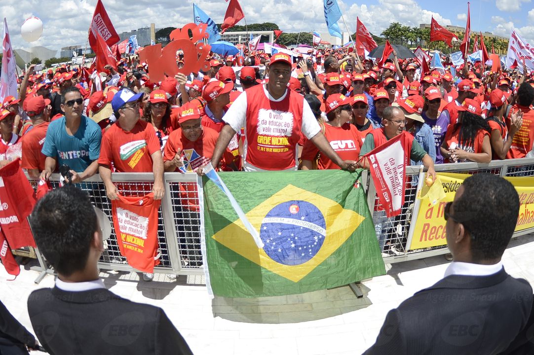 Cerca de 2,5 mil professores de todo o país ocuparam a Esplanada dos Ministérios e posteriormente se aglomeraram defronte ao Palácio do Planalto em um ato por melhorias na educação. Mais cedo, eles se concentraram no gramado do Congresso Nacional com faixas, cartazes e apitos.