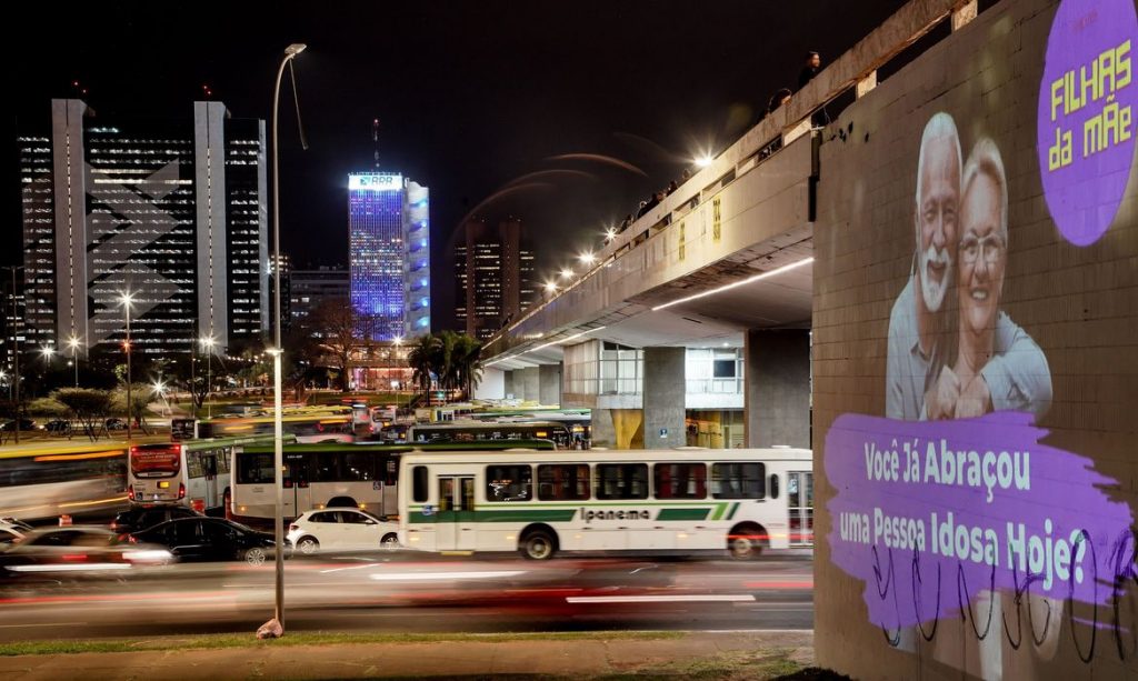 Com fotos e frases em defesa dos idosos, as imagens foram projetadas entre o Teatro Nacional e a Rodoviária de Brasília, no Palácio do Buriti, sede do governo distrital, e na Câmara Legislativa do Distrito Federal.