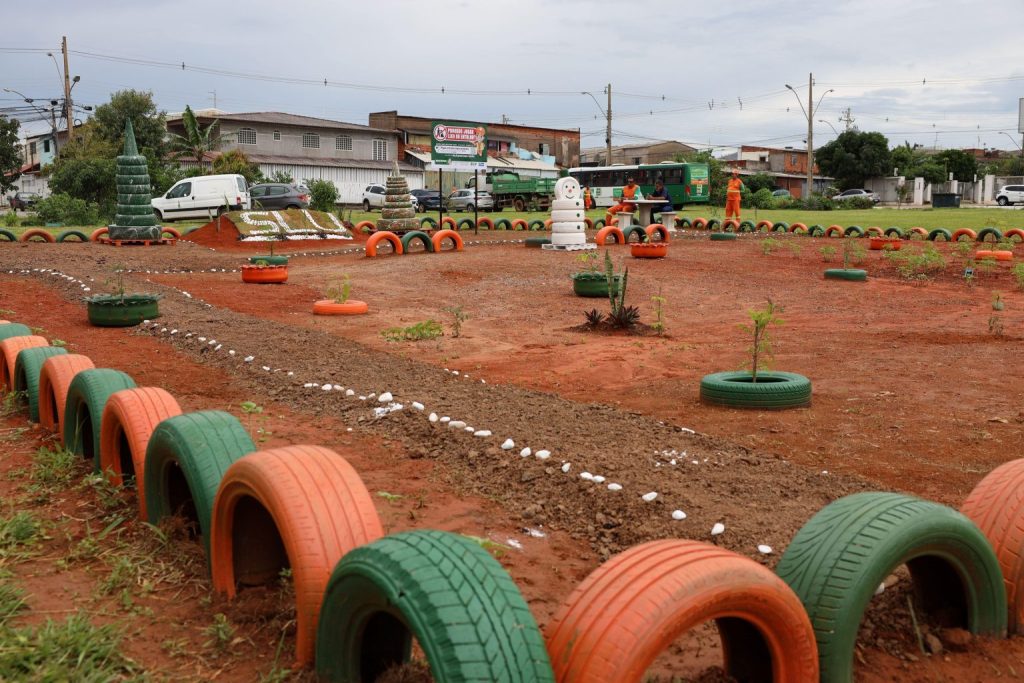 Nesta edição do projeto, também foram plantadas 30 mudas de plantas. O gari da catação Cristiano Freire, que é artista em reaproveitamento de recicláveis, utilizou cerca de 100 pneus para a confecção de bancos e outros objetos para ornamentar o espaço.